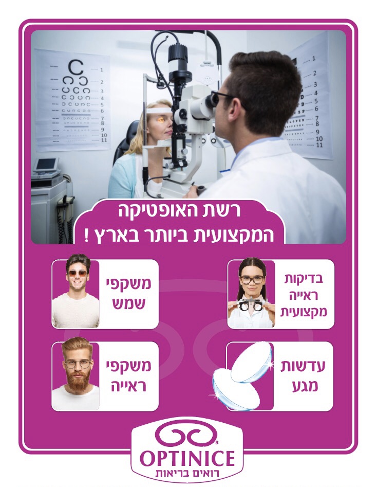 בדיקת ראייה על ידי אופטומטריסט מוסמך משרד הבריאותמשקפי שמש וראייה מהמותגים המובילים בעולם